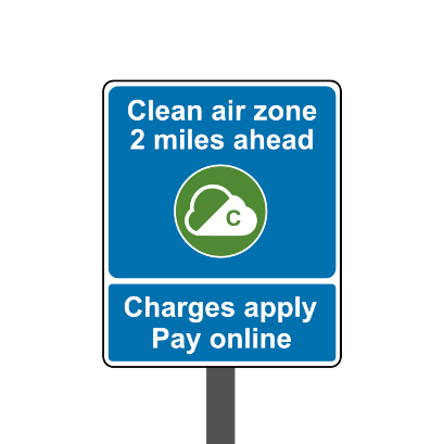 Clean air zone signs help drivers identify when they are approaching, exiting or travelling within the zone.