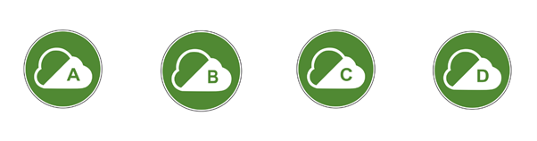 Each zone is marked with a white‑on‑green cloud symbol, and the letter inside the cloud shows which class applies. The classes determine which types of vehicles may be charged in the zone.