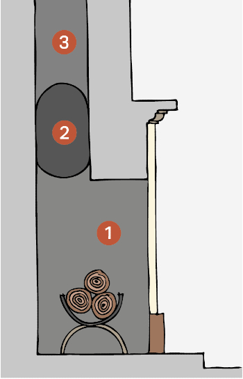 In an active fireplace the flue will be warmed by the fire and the thermal mass of the chimney will help dissipate heat around the home. A used flue is unlikely to suffer from cold down-draughts unless it is not working properly, but a fully functioning flue loses a significant portion of the heat produced by a fire directly to the outside. In an un-used fireplace however the picture is different. The flue becomes a route by which cold air can enter the building and energy used for heating the home by central heating, for example, is wasted.