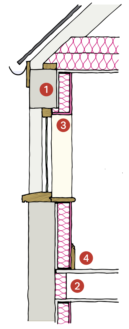 2. On terraced buildings insulation may be carried partly across the party walls to reduce the thermal bridging at the edges of the building.