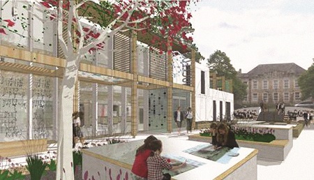 Building materials included straw bales, grown and made at a farm just outside Bath, which form the super-insulated building envelope. This technology was developed at the University of Bath. The external furniture is produced from oak planks responsibly sourced and recycled from a local building.