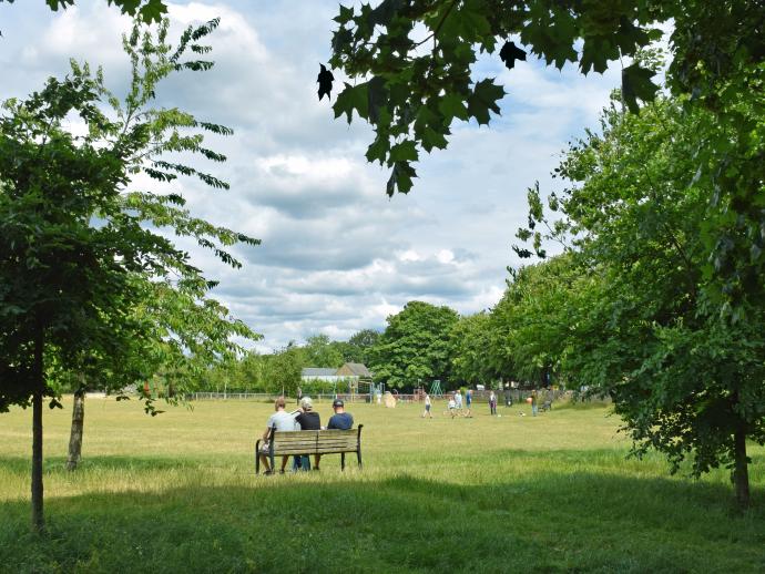 An extensive, tree-lined riverside recreation space, ideal for festival, circus or sporting events