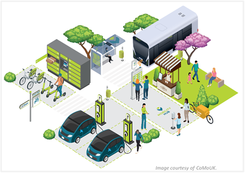 Artist's impression of a mobility station (Copyright: CoMoUK)