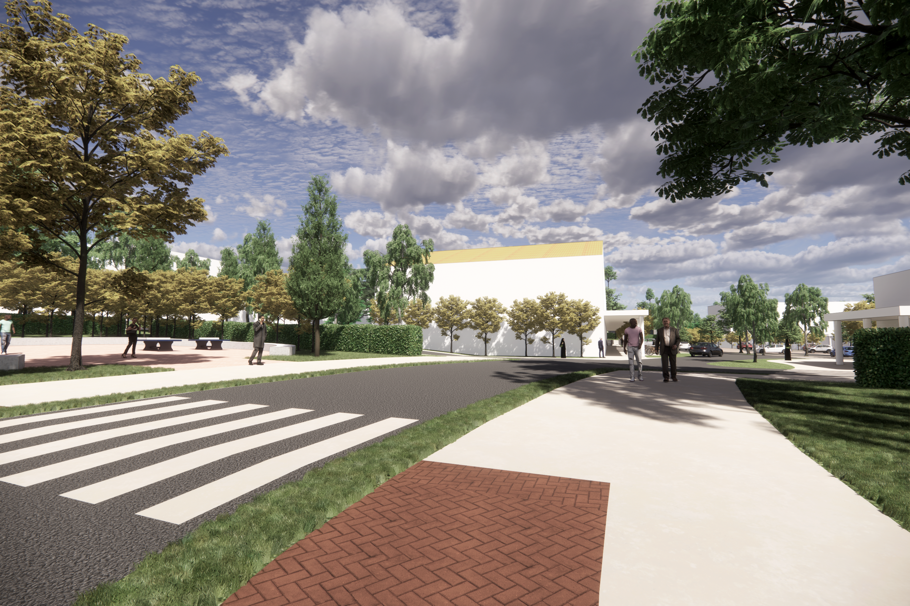 Eye-level impression of how the new street character could look, demonstrating the proposed high quality landscaping and tree planting