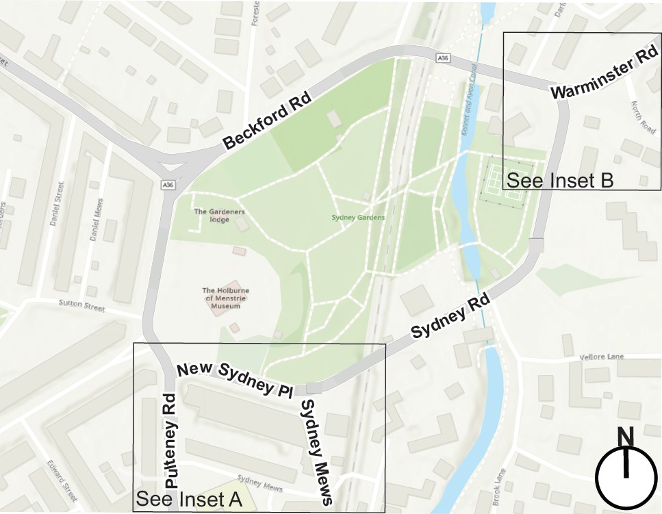 - Vehicle access is retained for all homes and businesses on Sydney Road via the junction with Warminster Road (A36), with enough space for vehicles to turn and no loss of parking in front of the bollards.