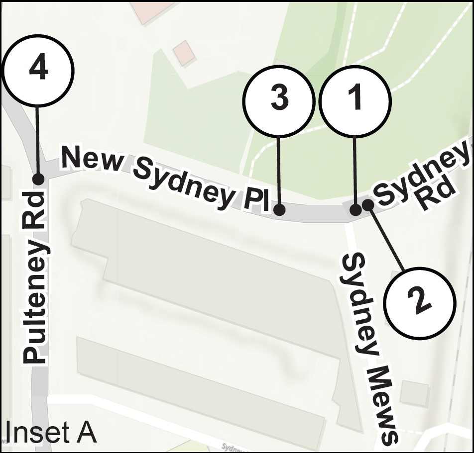 - Vehicle access is retained for all homes and businesses on New Sydney Place via Darlington St/Pulteney Road (A36) with enough space for vehicles to turn and no loss of parking.