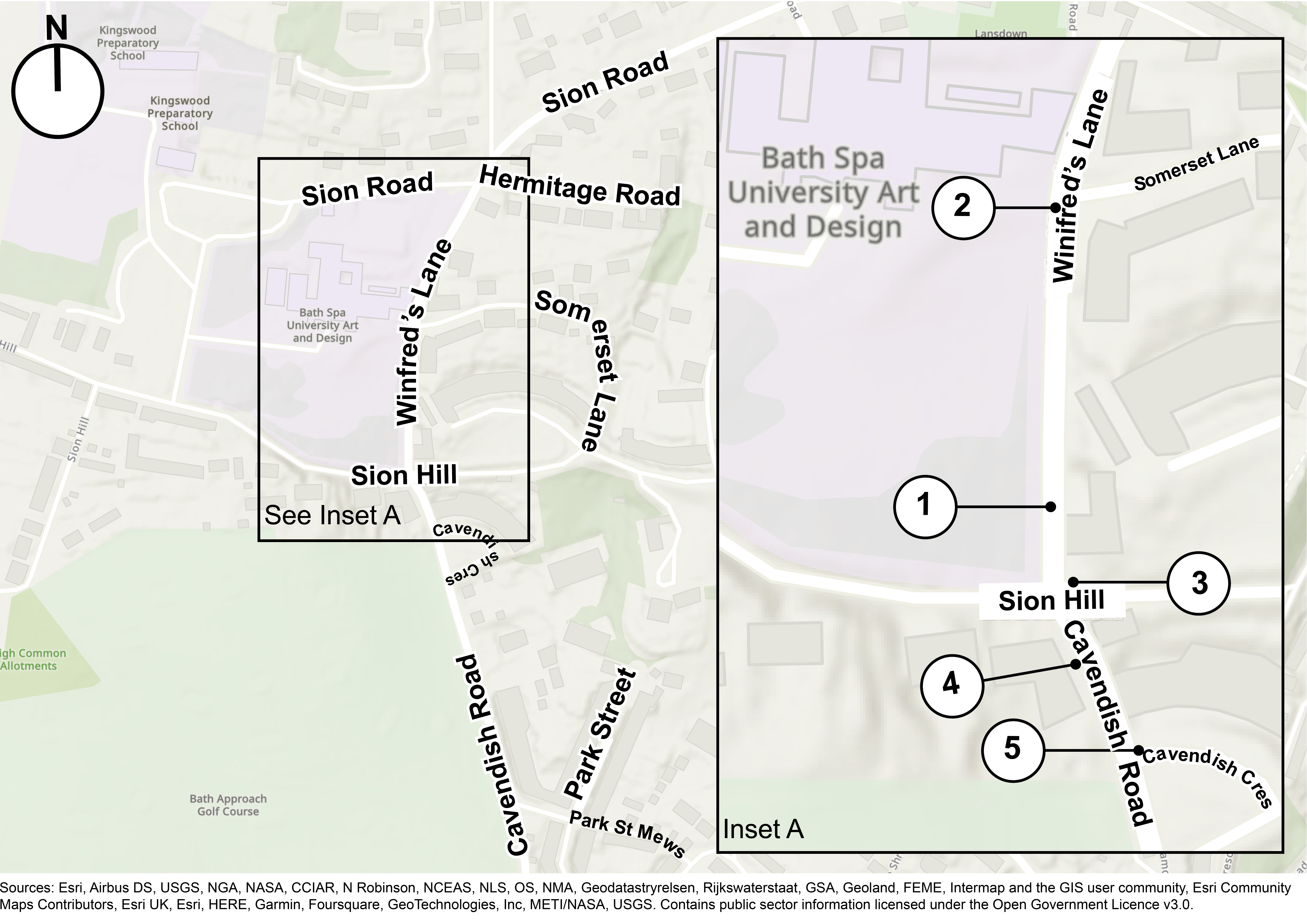 The section of Winifred’s Lane north of the restrictions remains one way (northbound). Vehicle access to properties in Somerset Lane is via Lansdown Crescent and the option to exit Somerset Lane into Winifred's Lane (northbound) is retained. Emergency and service vehicles are able to remove the bollards to gain access.